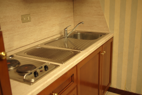 それになぜかむだに1LDKで、ホテルにしては大きなキッチンがついていた。